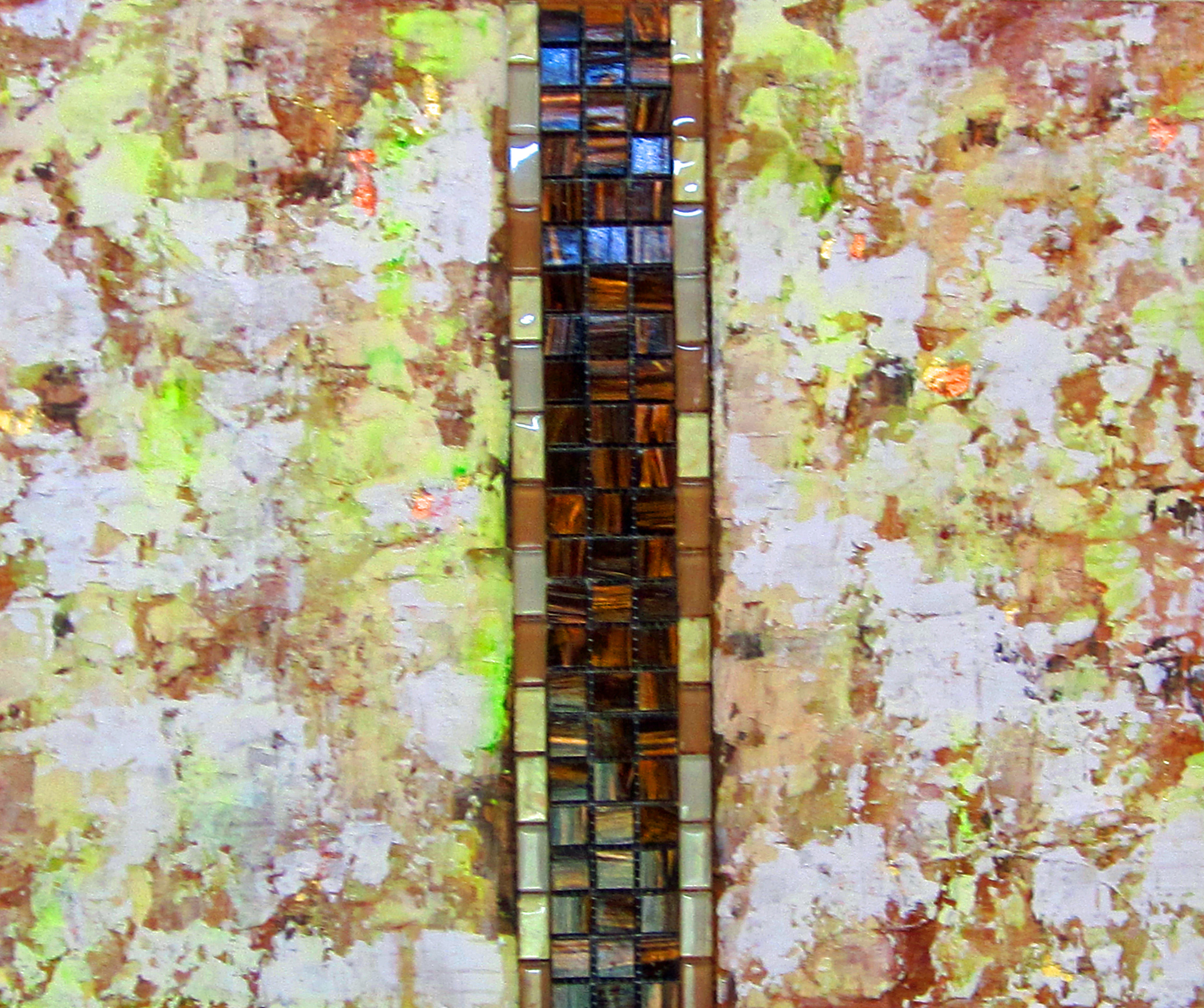 I now have “White III” to introduce to you. Here I bring stones that harmonize with the under-painting (what’s under the last white layer), bring a special interest to the center of the painting and enjoy the company of the occasional gold leaf.